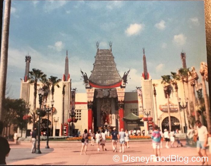 Here’s a facade that has seen some changes over the years, but to this day still stands: the replica Chinese Theater at the entrance of Hollywood Studios (although when this picture was taken, the park went by a different name…let us know in the comments if you know what we’re talking about)!