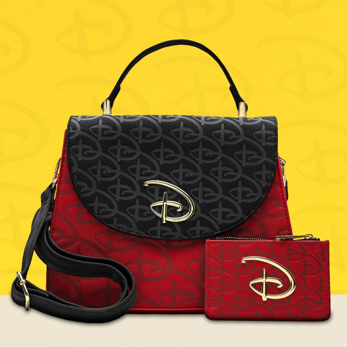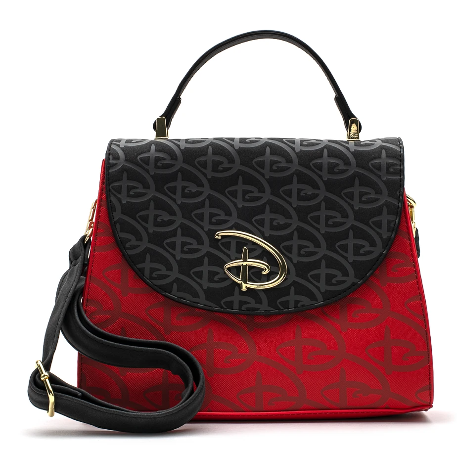 Check out the sophisticated lines of this Logo Debossed Crossbody Bag for $65! It’s made of red and black faux leather and features a removable crossbody strap and top handle — how very Disney couture!