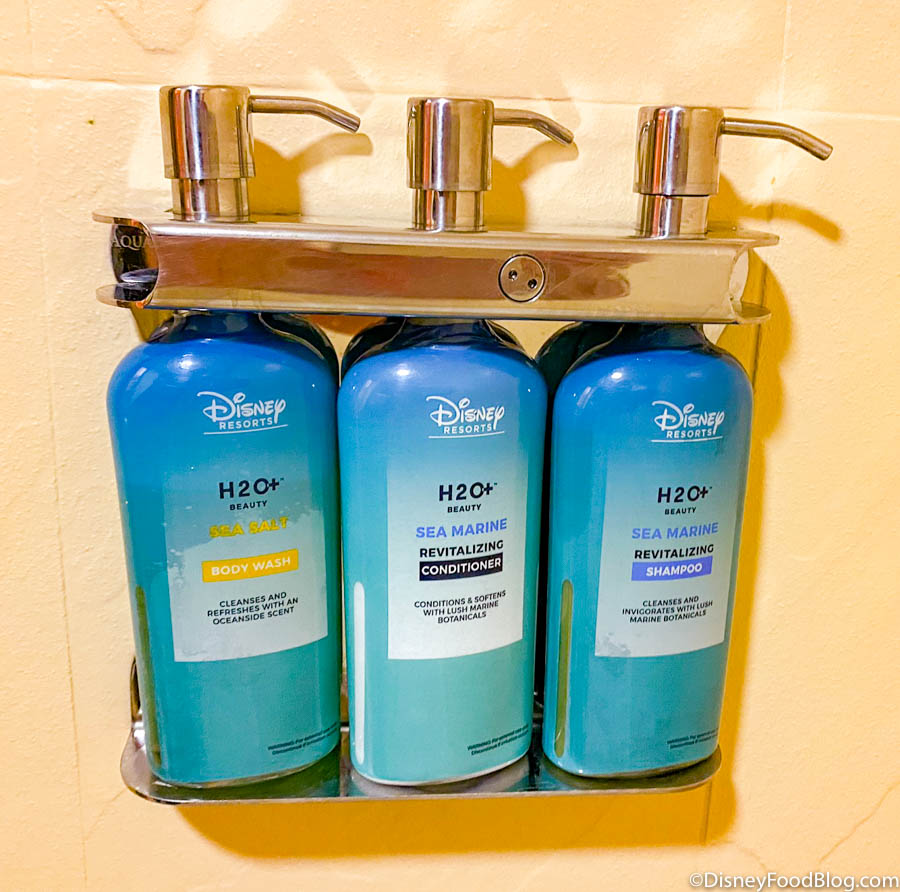…using the newer shampoo, conditioner, and body wash canisters that have started to be put in the resorts.