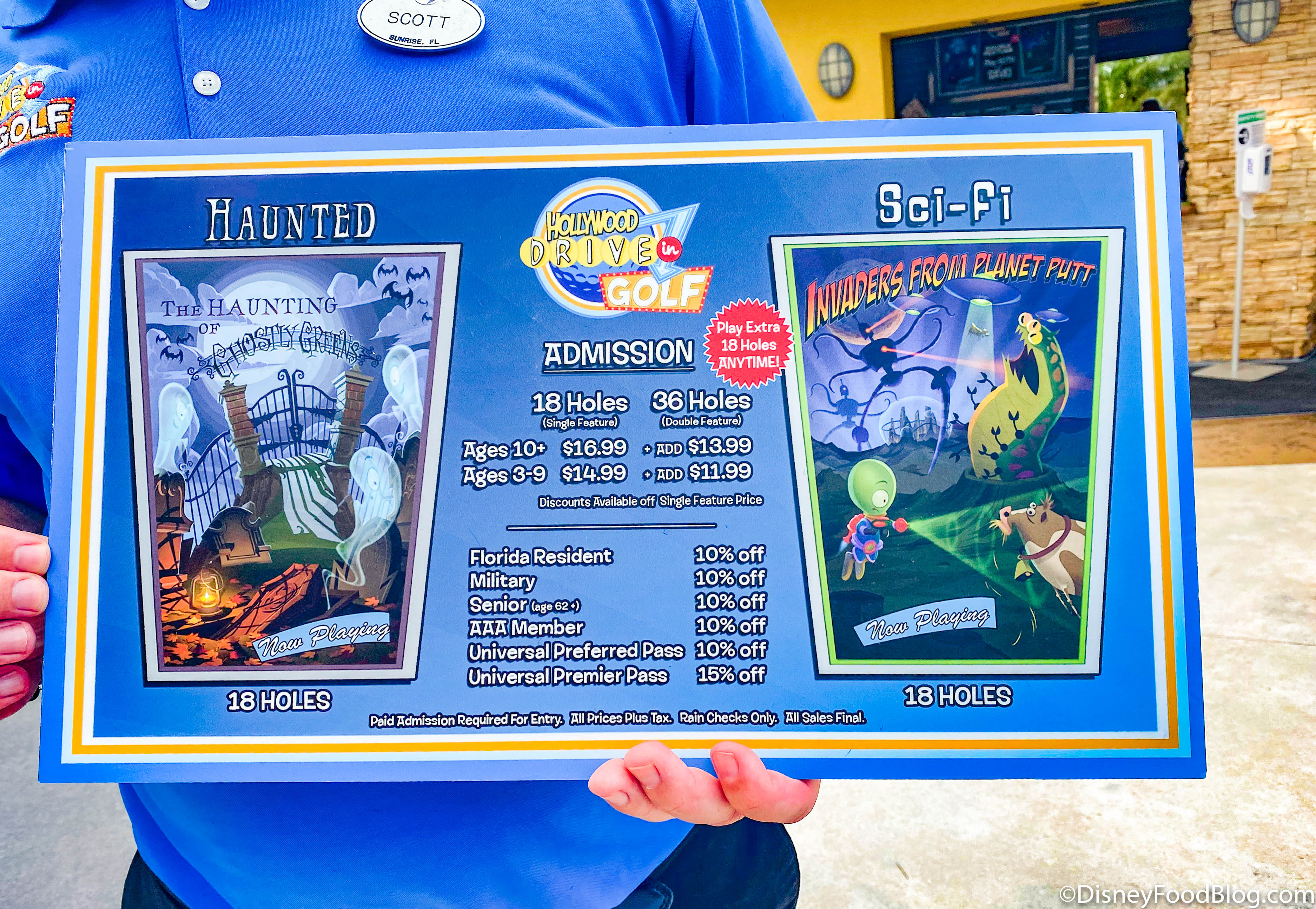 Universal’s Hollywood Drive In Golf usually operates with two courses: Haunted and Sci-Fi. But at today’s re-opening, only the Haunted course was available to guests.