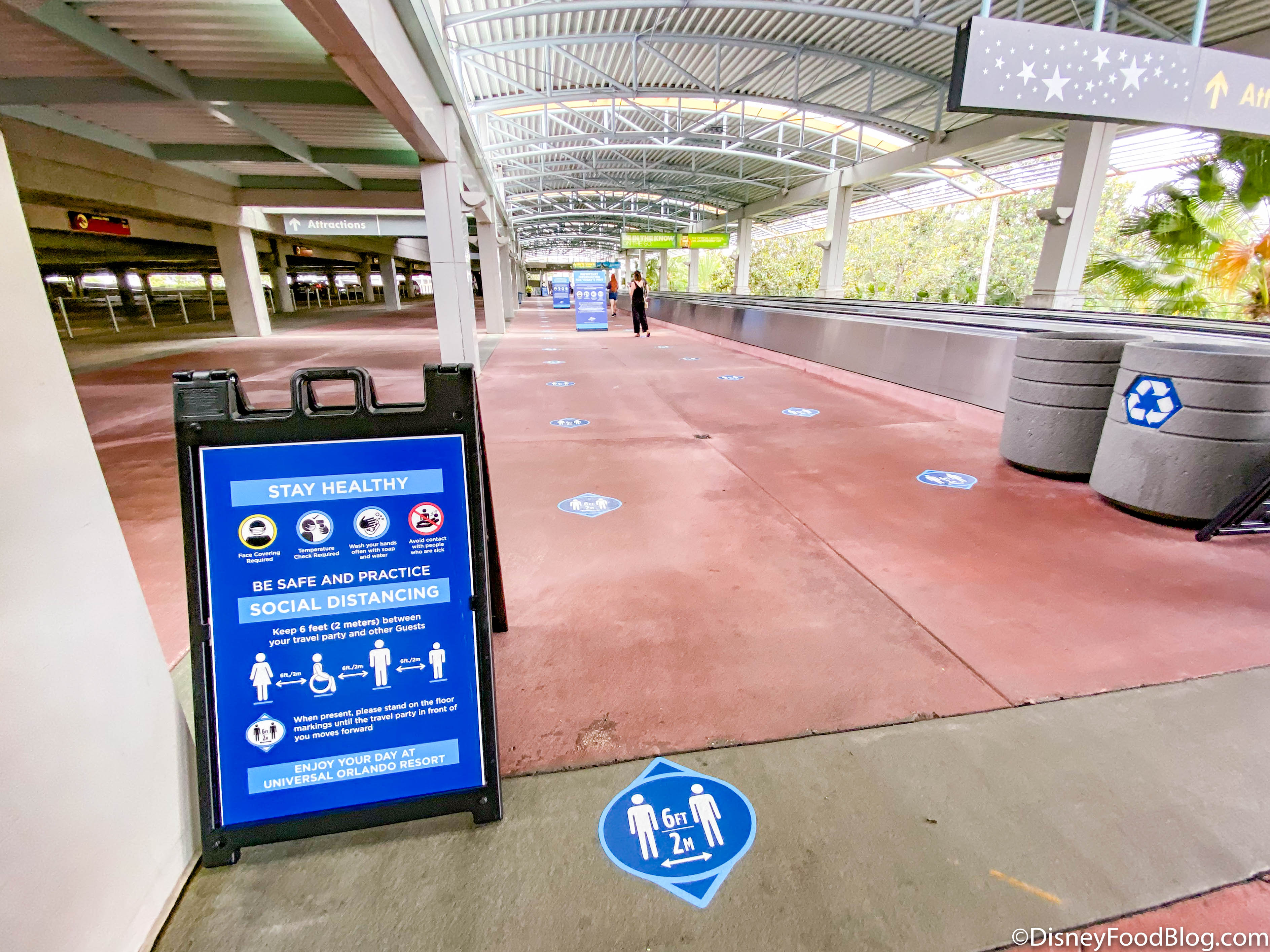 In order to be admitted to CityWalk, there are a number of safety measures that guests are required to follow. Universal asks that all guests use a face covering, have their temperatures checked upon arrival, wash their hands often, social distance, follow floor markings, and avoid people who are sick.