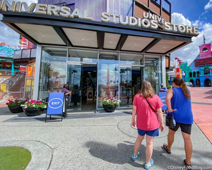 At the Universal Studios Store, there were designated doors for entering and exiting. There were Purell dispensers set up near the doors, and merchandise was stocked and available on the floor as normal.