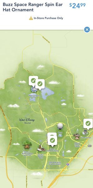 Sometimes things are available to purchase directly in the app, while others are available in-store only. But wait, there’s more! The app will also show you all the merchandise locations on property that carry the item!