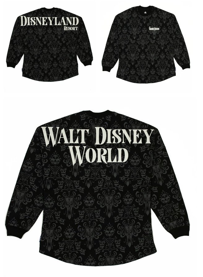And it looks like a Haunted Mansion Spirit Jersey for both Disneyland and Disney World are currently in the works! The Haunted Mansion wallpaper pattern looks extra-ghoulish with a black background!
