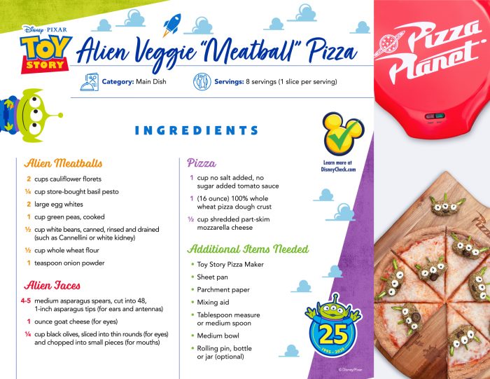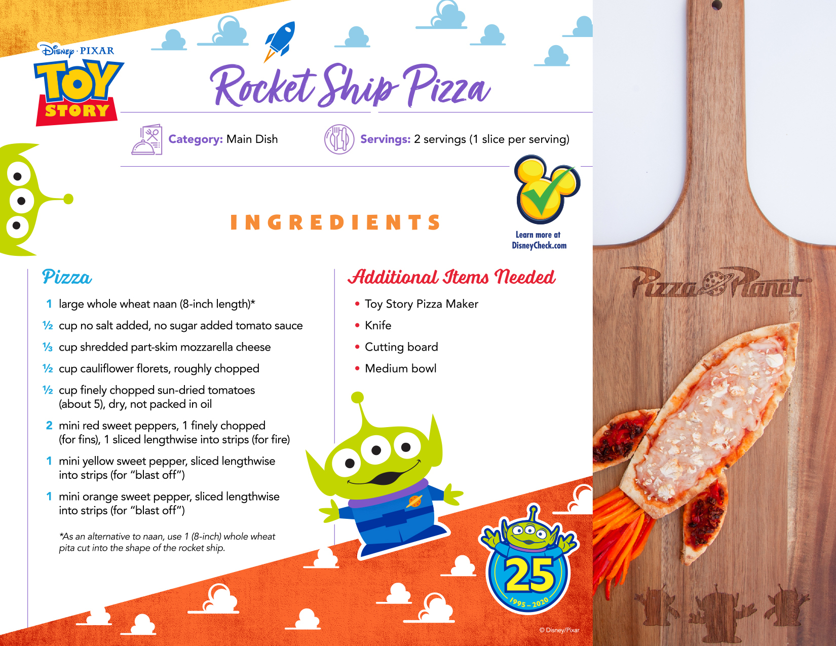 Both of these recipes are inspired by the iconic Pizza Planet restaurant from the movie and they both get the Disney Check which means they’re pretty darn healthy! After you’ve gathered the goods, follow this easy 7-step process to complete the recipe.