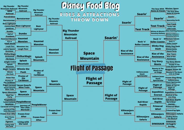 Both had emerged unscathed from some pretty tough competition by that point. Space Mountain had claimed victory against fan-favorites Pirates of the Caribbean and Seven Dwarfs Mine Train. And Flight of Passage had toppled heavy-hitters Expedition Everest and Tower of Terror.