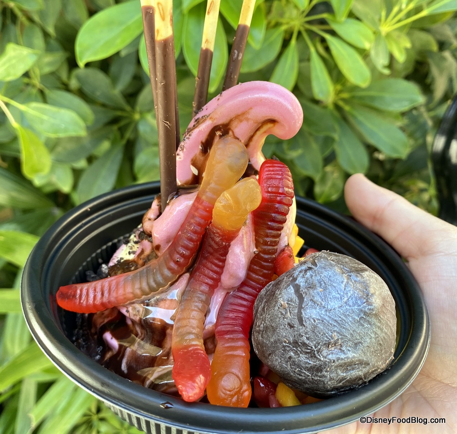 Recently we’ve tried the Twisted Ambush Loaded Dole Whip topped with fruit, crystalized hibiscus, and more…