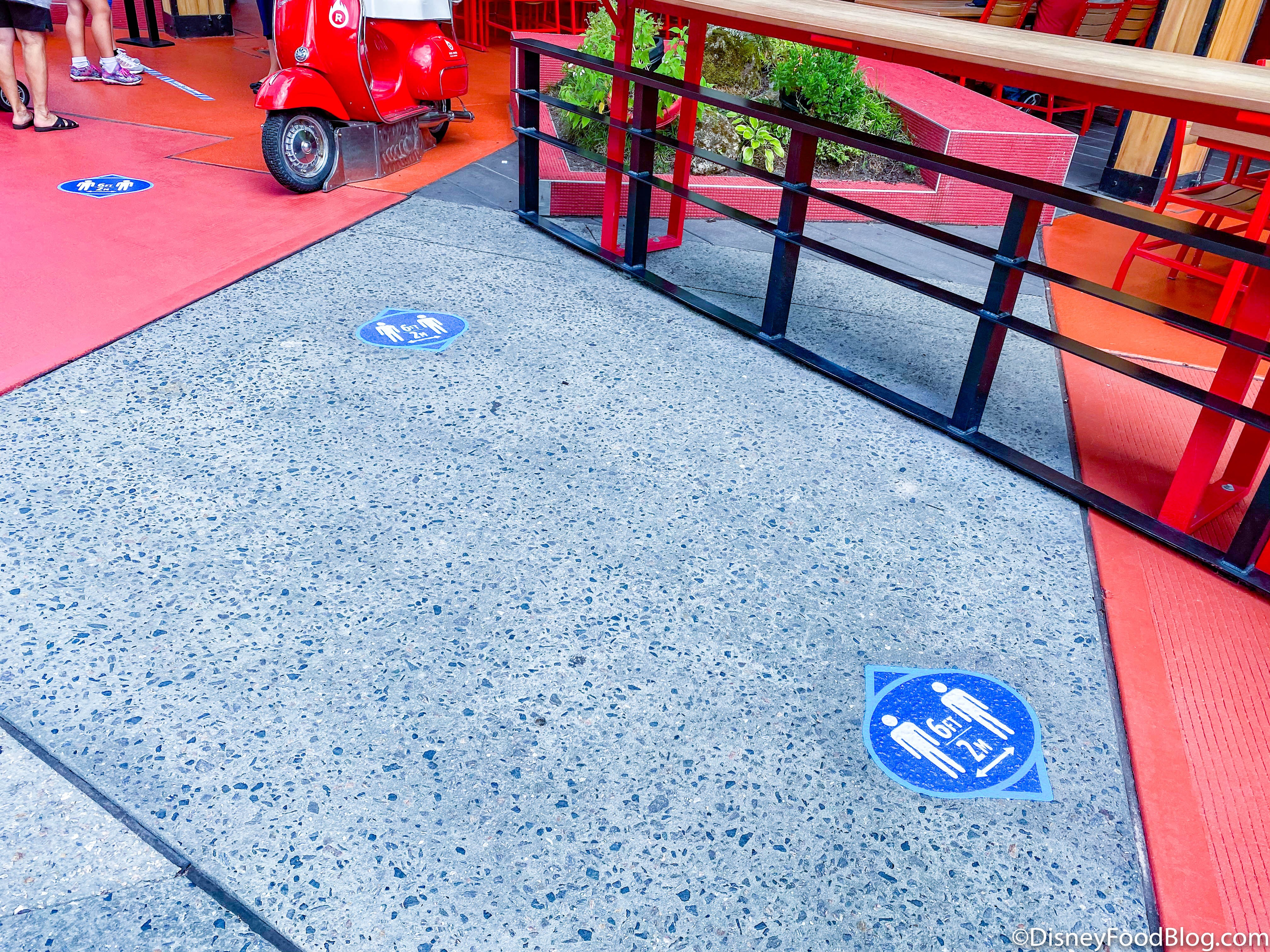 Prepare to maintain physical distancing at Disney Springs as well, and keep an eye out for similar markers that indicate proper spacing!