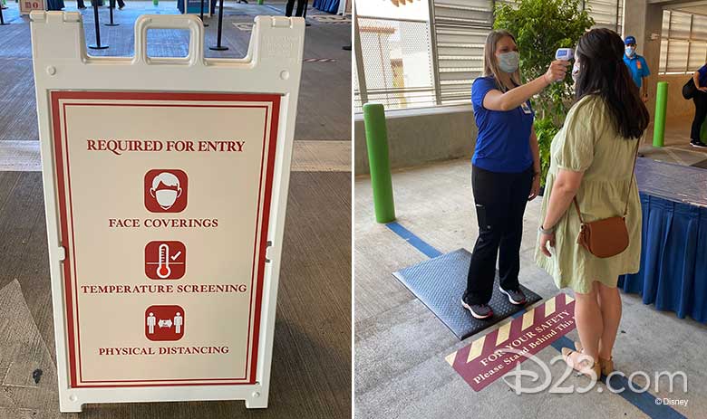 As we know, Disney is requiring health screenings and temperature checks for those entering Disney Springs. It is also required that all guests and Cast Members wear masks during their time in the complex. Dukes reported in on what the screening space looked like when she arrived.