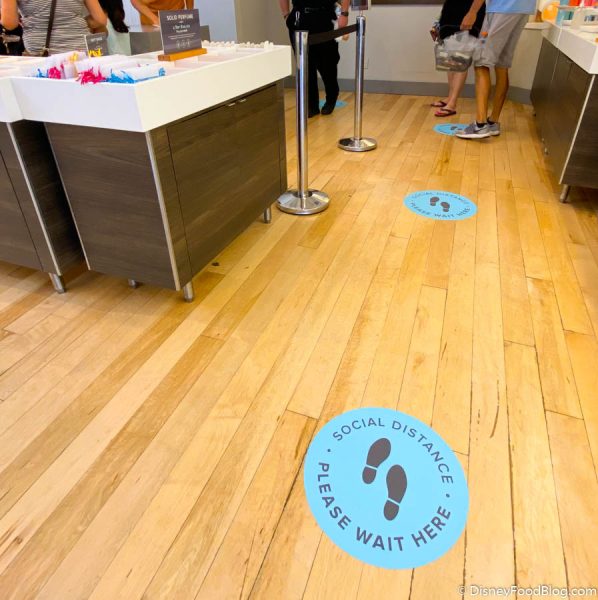 We were welcomed in by a masked greeter at the door who is there to control capacity. Like many Disney Springs locations, there are markers on the ground outside for when the store is full and guests need to distance in the queue.