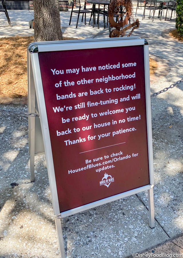 Also, keep in mind that not all dining locations are reopened yet! We spotted signage for House of Blues and The Smokehouse indicating they’ll be back soon.