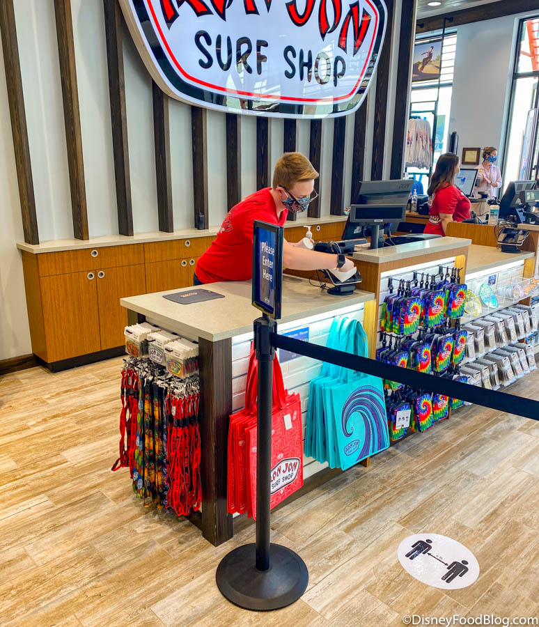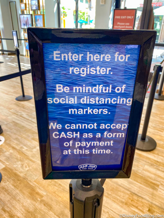 While we did find several locations that were accepting cash, some places like Ron Jon Surf Shop were not. So, we’d say plan on coming to Disney Springs with a non-cash method of payment just in case. Or, stop by the Welcome Center to buy a gift card if needed!