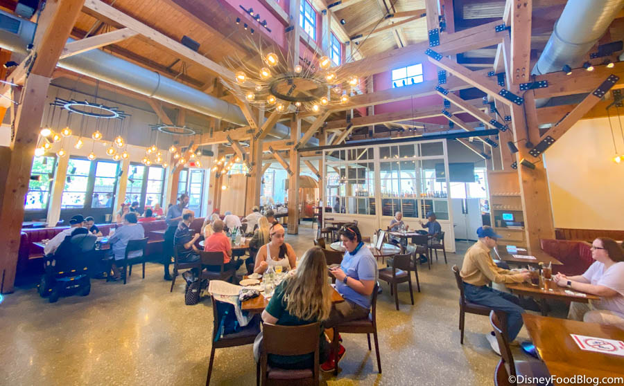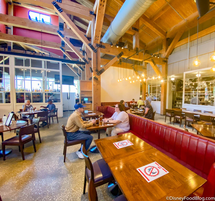 If you’re a fan of grab-and-go style eating, you’re in luck! We noticed that the to-go dining experiences were pretty similar to what we’re used to in Disney Springs. We saw tables and chairs placed outside dining locations that wouldn’t usually have their own designated seating. We also didn’t notice any areas where seating had been entirely removed.