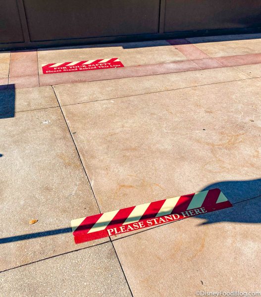 To accomplish this, we noticed that Disney has implemented markings on the ground, physical barriers, signage, and reminders from Cast Members.
