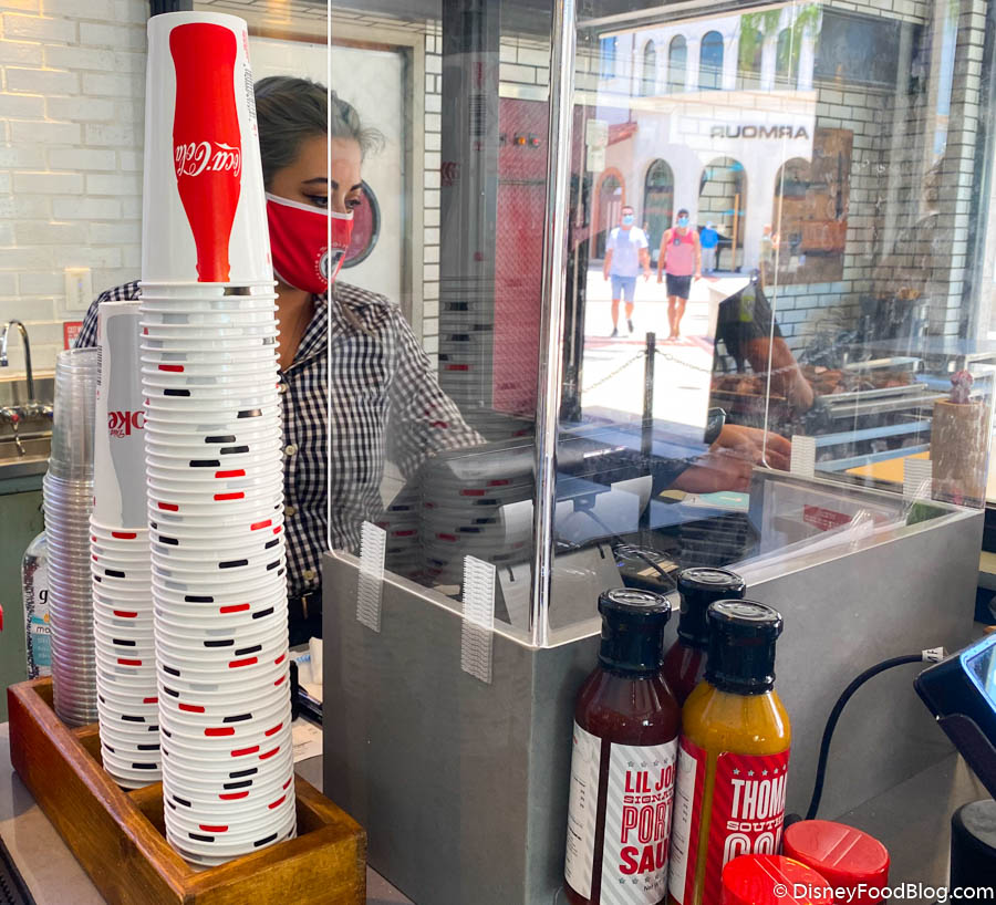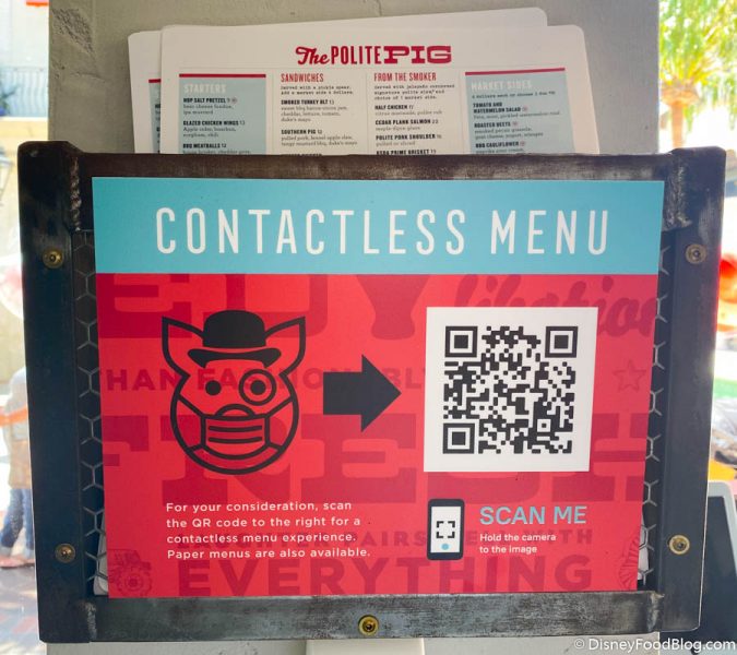 Disney Springs began reopening with additional health and safety measures. While not all locations chose to resume operations immediately, The Polite Pig is one of the third-party restaurants that reopened with Disney Springs. So, we stopped by on our visit to Disney Springs to see what it looked like on its first day back in operation.