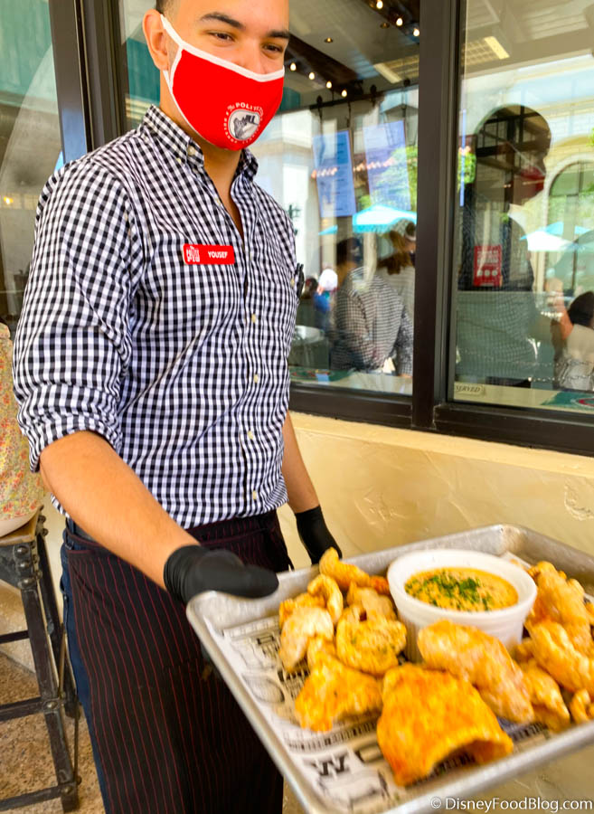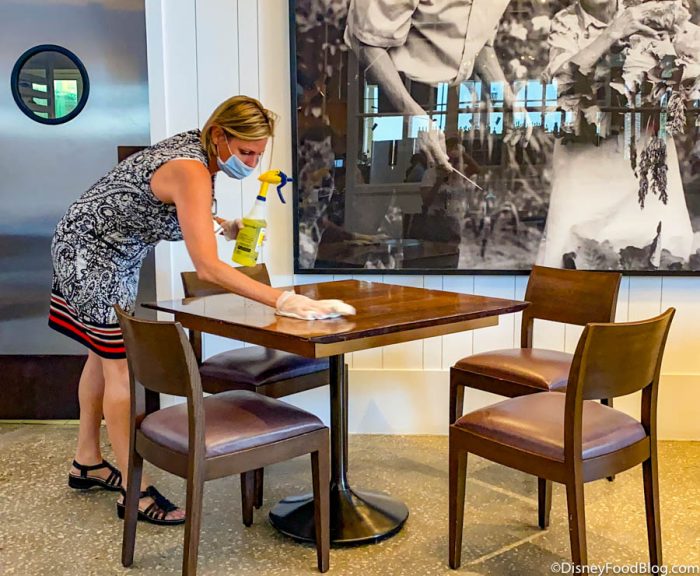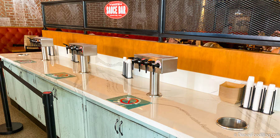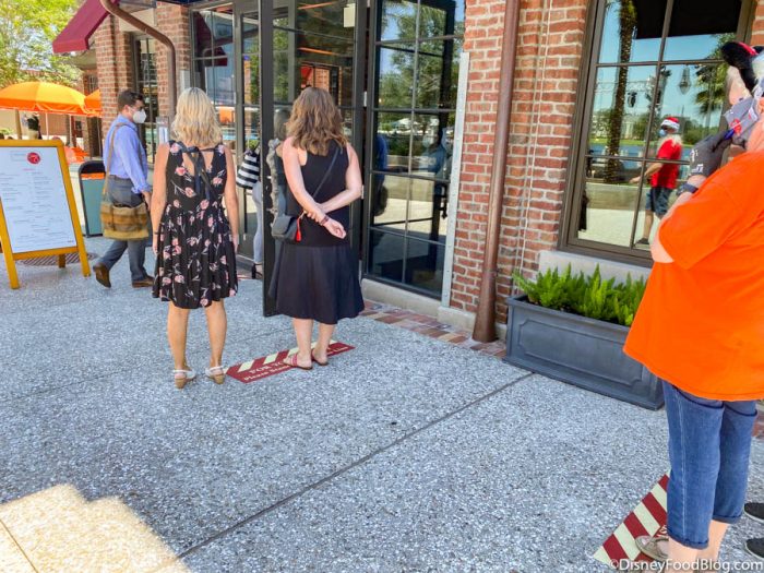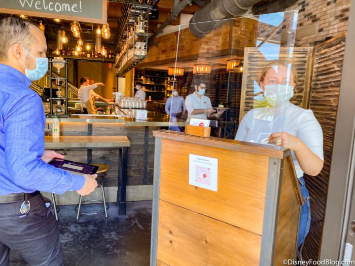 We’ve been busy sharing with you our own guest experiences such as parking at Disney Springs, having our temperatures taken, and seeing what some of the recently reopened retail stores have been like inside. Now want to share with you what it’s like to dine at Disney Springs right now. Do note that each location is doing things a little differently!