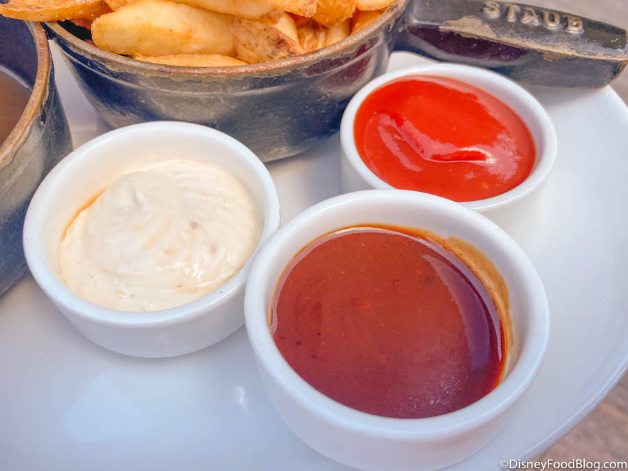 The beef au jus, horseradish sauce, and ketchup were all included with the Ribeye Sandwich, but our server suggested we get the STK bold sauce for $2.