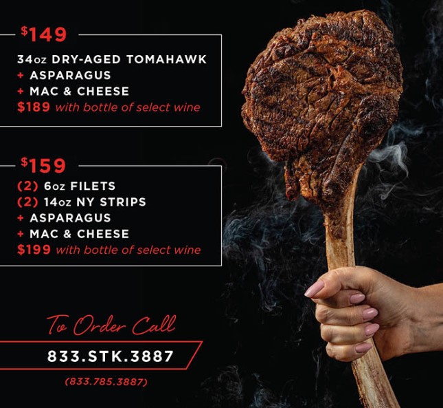 The special is available Friday, May 22nd through Monday, May 25th for takeout only, while supplies last. You pick up your package at your local STK Steakhouse. And just as a reminder, STK Orlando just opened up in Disney Springs. To order, call (833) 785-3887.