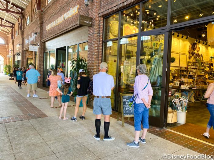 The most people we saw today were waiting in line while social distancing in front of Vera Bradley. This was the first store at Disney Springs we were able to confirm had face masks for sale.