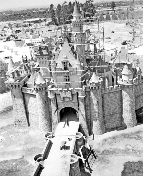 Interestingly enough, Sleeping Beauty Castle’s working drawbridge has only been lowered twice—once at the opening of the park in 1955 and again in 1983 at the rededication of Fantasyland! The original color scheme for Sleeping Beauty Castle was pale muted grays and blues with only a few traces of pink!
