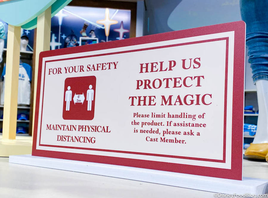 Many of these new signs will be located at entry points as well as throughout the theme parks themselves, especially where crowds tend to gather. Most of the new signs offer friendly reminders, instructing guests to always wear their face mask and allow for six feet of space between themselves and other parties.