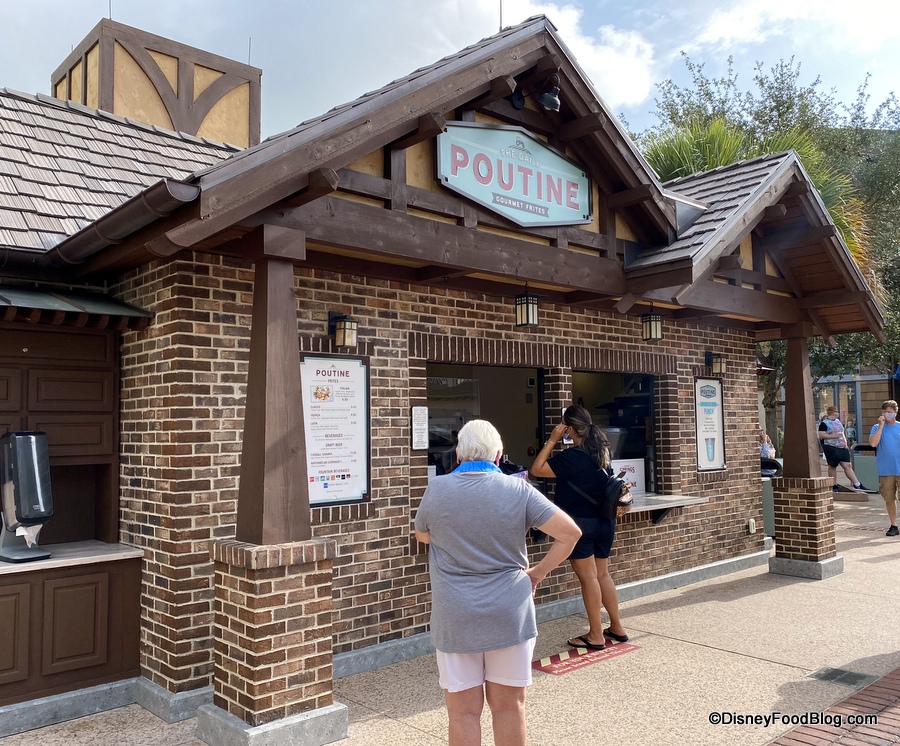 Our love of all things poutine at Disney World compelled us to stop by and see if anything had changed at this walk-up window location, and if any new procedures were in place!
