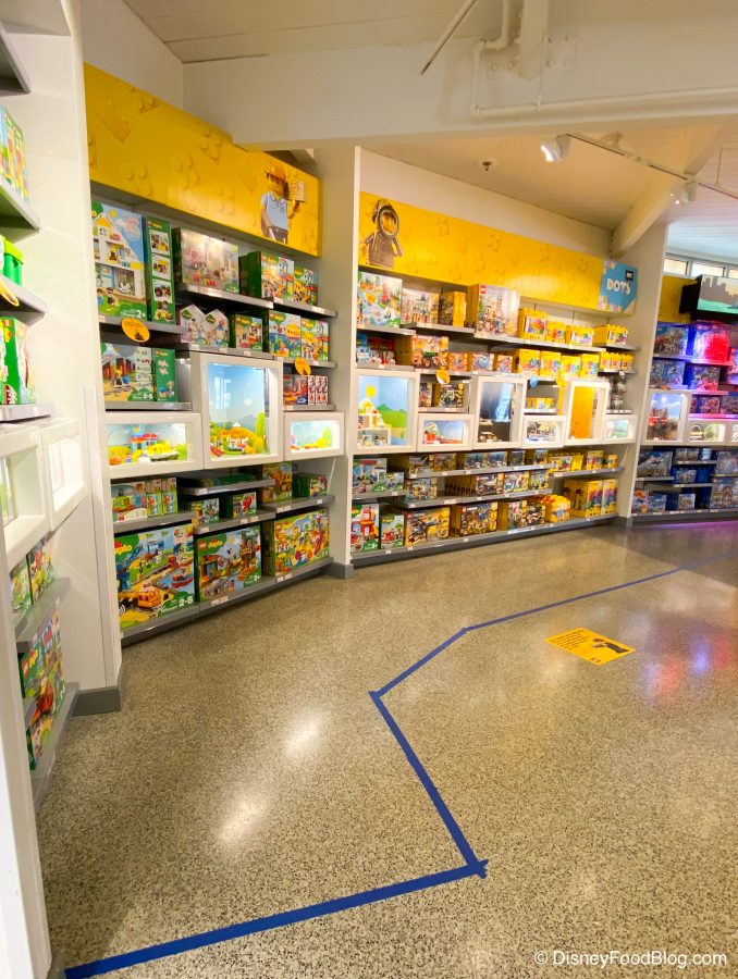 In addition, guests are NOT allowed to approach the shelves or touch ANY products inside the LEGO Store. This is indicated by taped-off sections of the store.