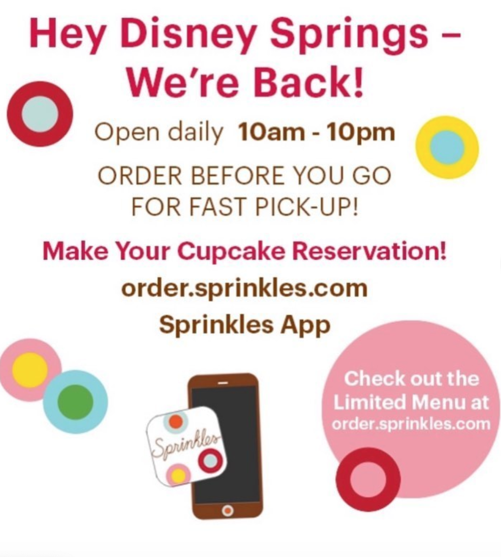 Now that World of Disney and several businesses have reopened at Disney Springs, Sprinkles has just confirmed they’ll be reopening on Friday, May 29th.