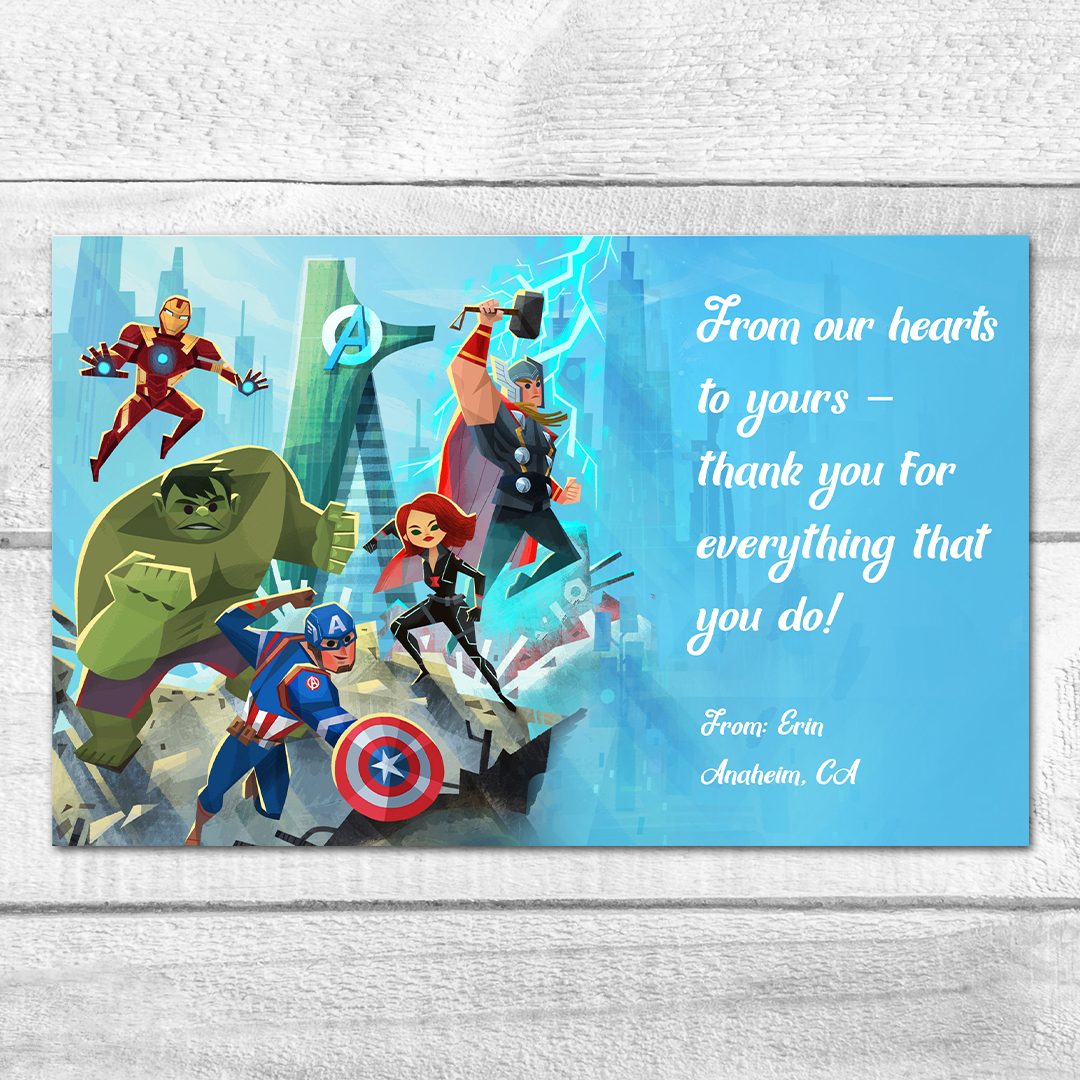 Cast Members and employees were able to visit the Disney VoluntEARS Thank You Card page where they could build the card with customizable options. They were able to choose from designs inspired by Disney films, select their thank-you message of choice, and stylize it with their favorite font. The cards were delivered earlier this week.