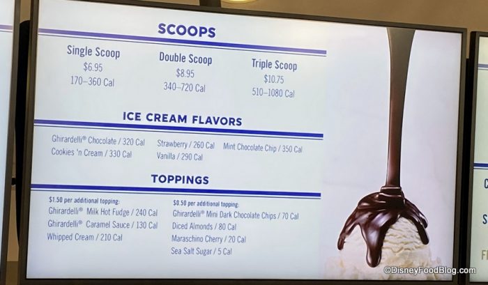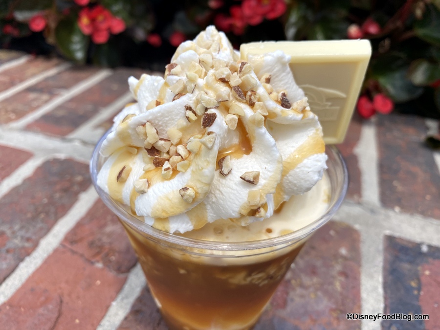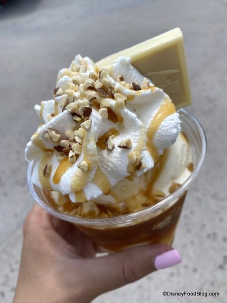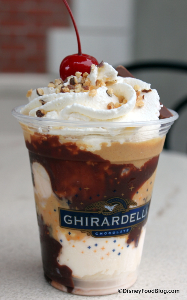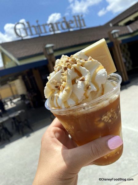Yeah, that’s it…. and it was a beautiful thing. Of course, since Ghirardelli stopped serving up peanut butter as an ingredient in 2015, this is not a huge surprise — we haven’t had the “old” Gold Rush in Disney World for years. (The Disneyland Ghirardelli location did continue to be the only spot to serve it for a while.)