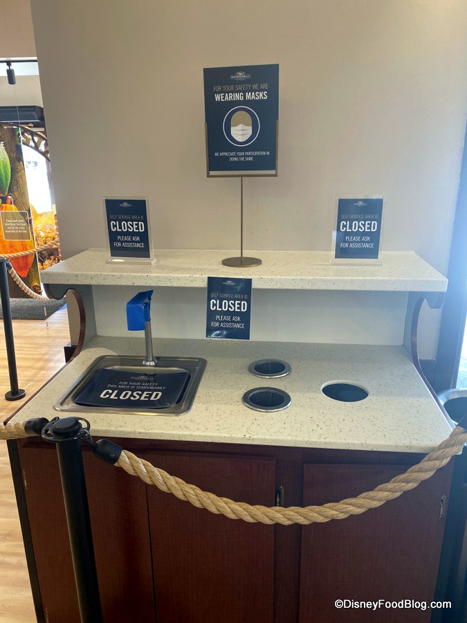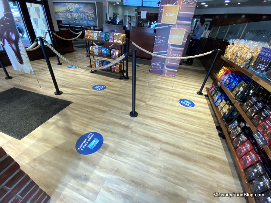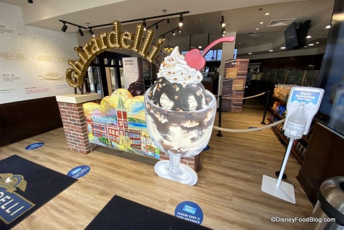 Mostly, that is… the Soda Fountain portion is now open to guests looking for some sweet treats. The Chocolate Shop (retail) section remains closed for the moment. But we’re here to show you around the newly reopened space, check out the new safety measures, and grab a (HUGE) sundae while we’re at it. So, let’s head in!