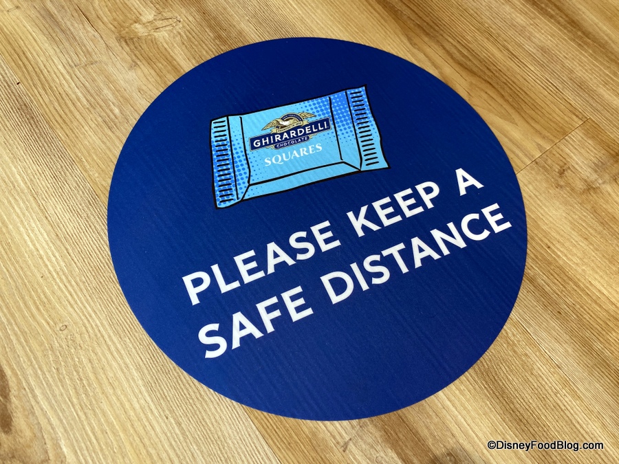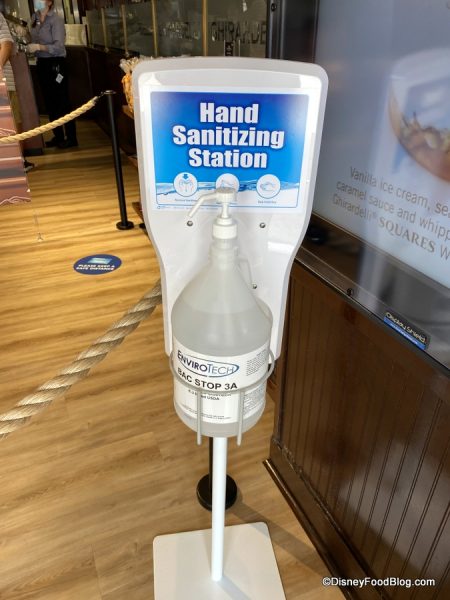 Aside from the lovely Ghirardelli sign and a not-so-small reminder of what’s in store (LOTS of ice cream, as evidenced by the larger-than-life sundae prop), you’ll also notice hand sanitizer available right when you enter.