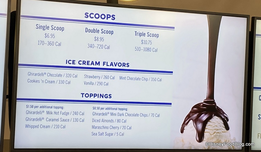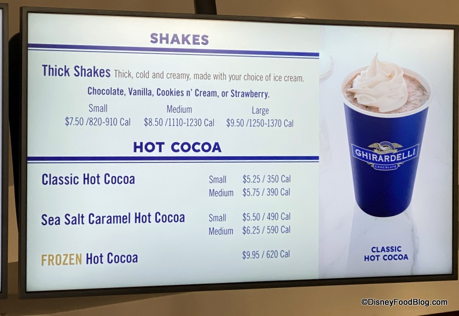 But things are starting back up with a more limited selection for the time being featuring three Sundaes, ice cream scoops and some toppings, shakes, and cocoa — including the Frozen Hot Cocoa in time for the rising Florida temps!