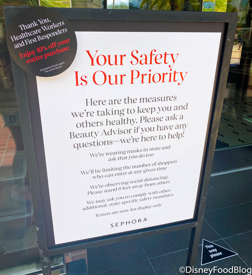 But while this might make it sound like there were a lot of folks shopping, we mostly had the store to ourselves! You see, Sephora is only allowing a few guests in at a time, so we waited outside until a group of guests left. Then it was our turn to enter the store!