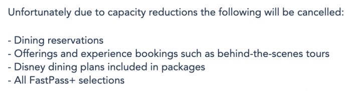 In addition to FastPass+ and dining reservations, Disney World also announced that all experience bookings such as behind-the-scenes tours have also been canceled.
