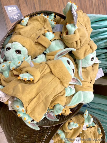 This layout reminded us a bit of the Little Green Men waiting for THE CLAW in Toy Story. But this little green dude is waiting for a new home with that precious little smirk. If history repeats itself, these little plushes may not stick around for long. So if you’re on the [bounty] hunt in Disney Springs, now is your chance!