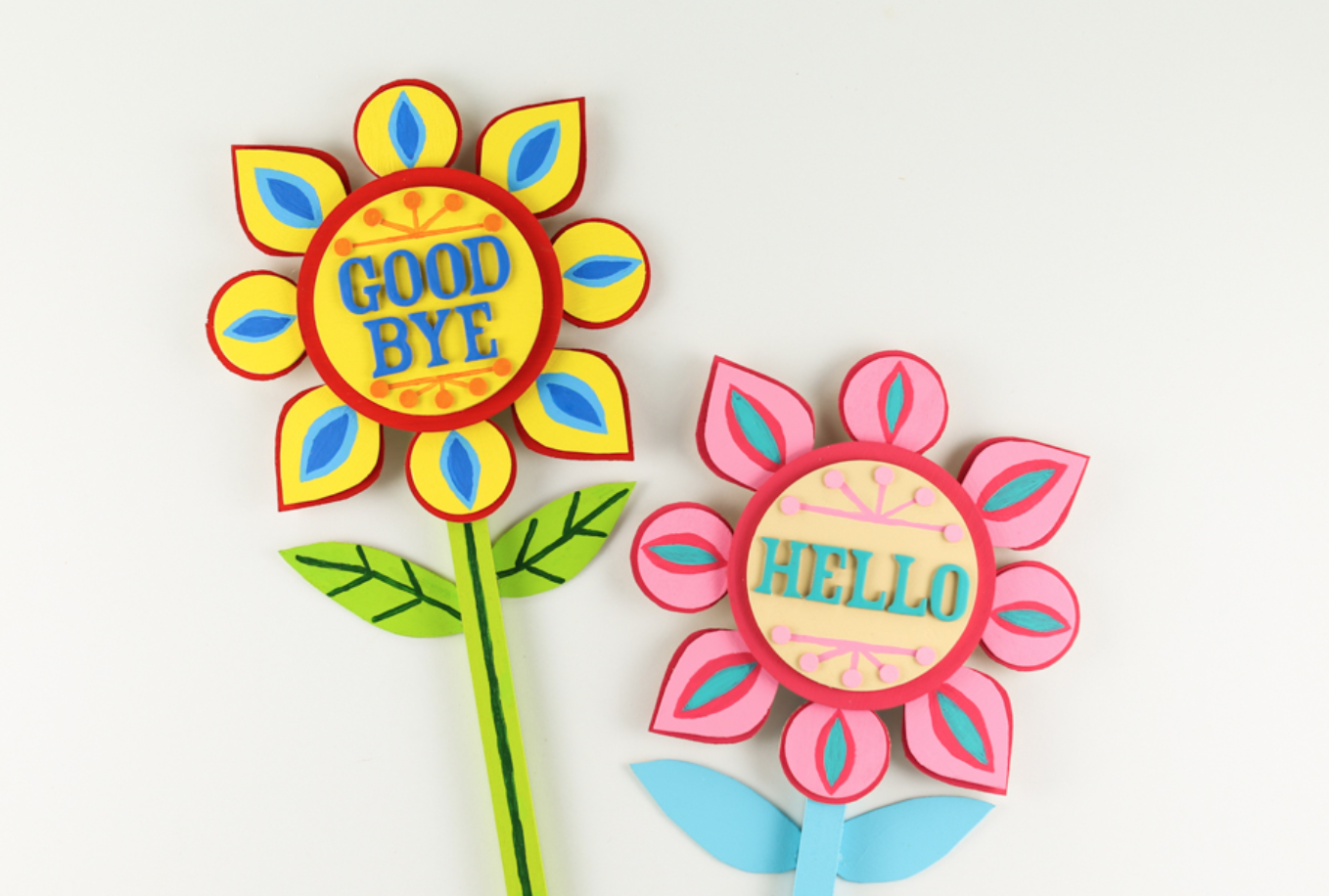 You can make the “hello” and “goodbye” signs from the attraction to put in your flower pots or vases around the house thanks to Disney Family!