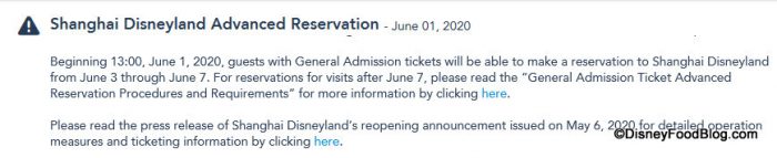 To this point, previously purchased General Admission tickets have not been accepted. However, an update to the Disneyland Shanghai website advises guests that — starting today, June 1st, guests with General Admission tickets will be able to make a reservation to visit the park for the dates of June 3rd through June 7th.