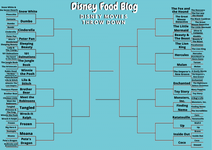 So far, we’ve already collectively chosen our favorite Disney World food in Snack Madness while the winner of our Rides & Attractions Throw Down really thew us for a loop! Now we’re making some of our Disney feature-length movies go head-to-head in a series of epic face-offs! Here are the movies that will be advancing into Round Two!