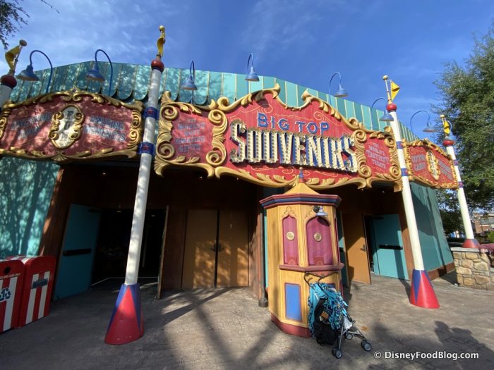 Big Top Souvenirs might also have the most unique gift shop appearance in Magic Kingdom since it’s modeled after a giant circus tent.