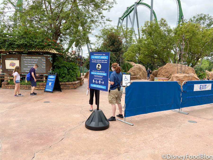 These areas are where guests can rest while social distancing without masks. Currently, two URest locations can be found in each park.