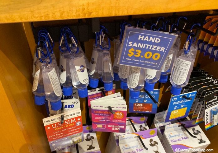 Universal is still selling hand sanitizer and had large amounts in stock! These bottles are great for snapping on your belt loop or bag for easy access as you move throughout the park.