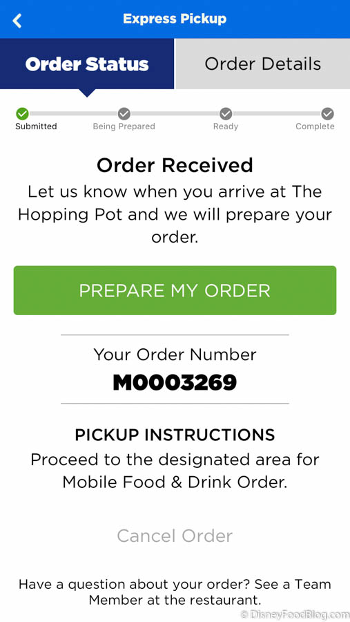 The app is pretty similar to Disney’s Mobile Order where you pick out what you want from a full menu in the app.