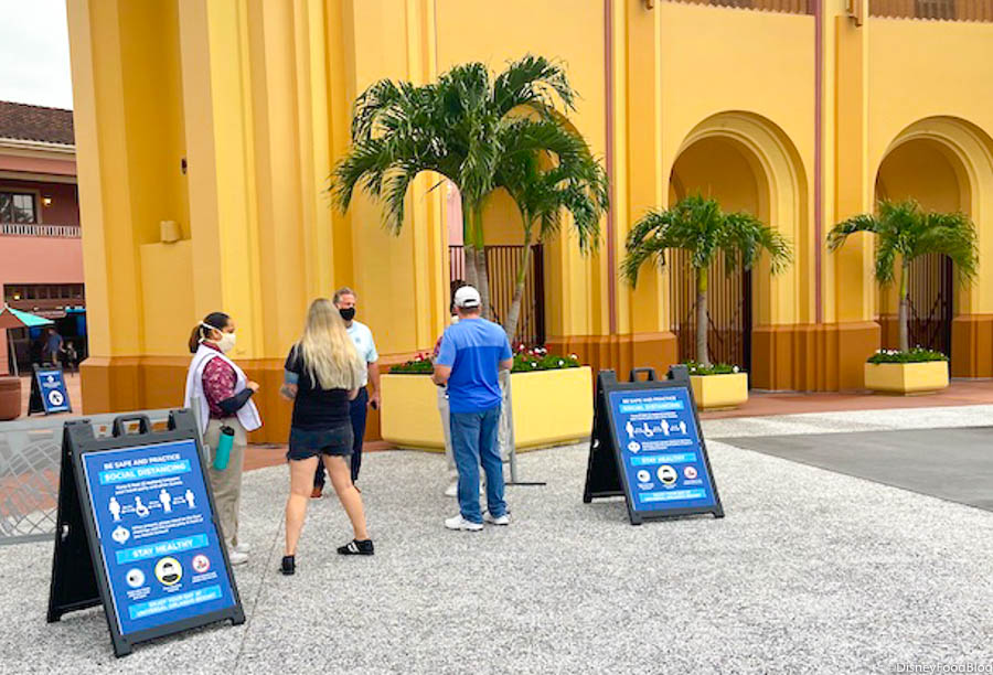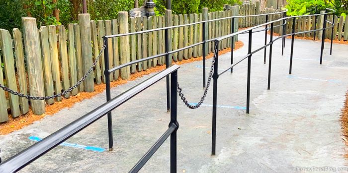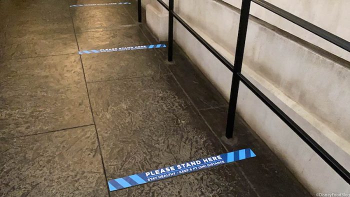 Of course, as you approach the ride vehicles, distancing is still in effect with more markers on the ground.