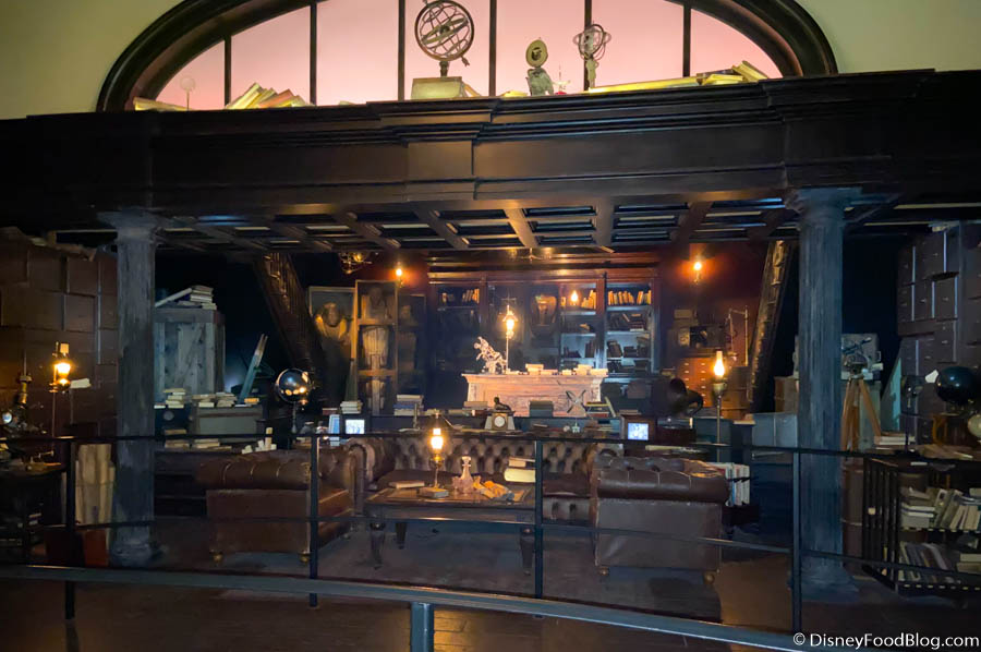 Mobile Order pick up is done with distanced lines using the markers. We noticed the pick-up line at The Three Broomsticks was pretty lengthy.