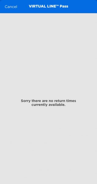 Throughout the day we did have some issues with the app for the Virtual Line. Sometimes we were unable to register for new lines when we should have been able to.
