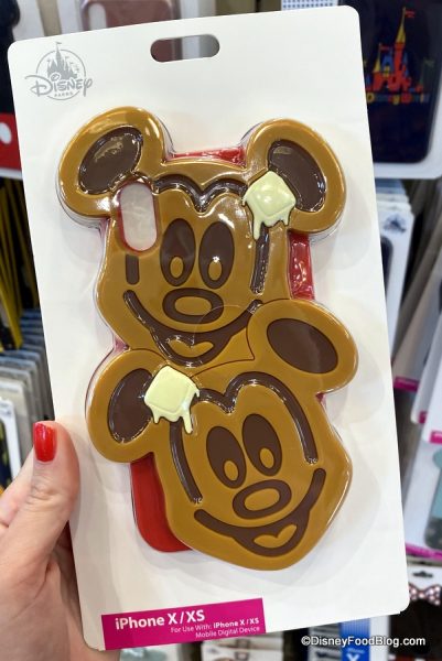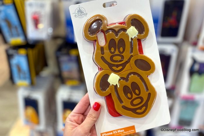 We found this D-Tech phone case on shopDisney earlier this year, and today we spotted it at World of Disney in Disney Springs. Complete with Mickey’s signature grin (two of them, in fact!), and “melting butter” pats, the waffles are placed atop a red case.