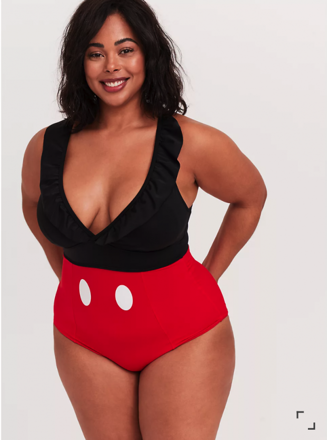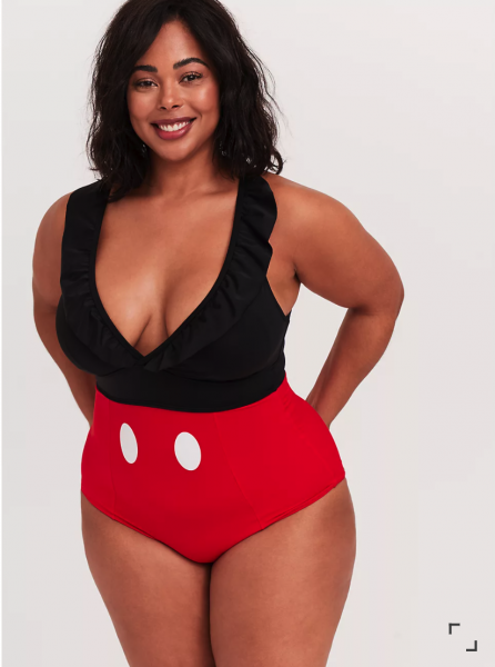 We also found THE cutest Mickey Mouse ruffle swimsuit at Torrid! Who’s the leader of the pool club?