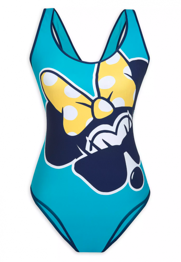 Luckily for you, we found some super cute and chic swimsuits, starting with this scoop neck swimsuit for juniors! Minnie Mouse is sporting some serious poolside style with her sunglasses and bow! It’s priced at $49.99.
