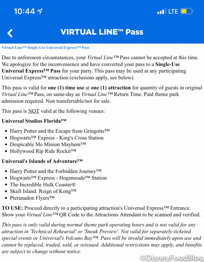 But just when all hope seemed lost, we received a push notification…and WHAT WAS THIS?! Universal sent us a one-time use Express Pass for our troubles!